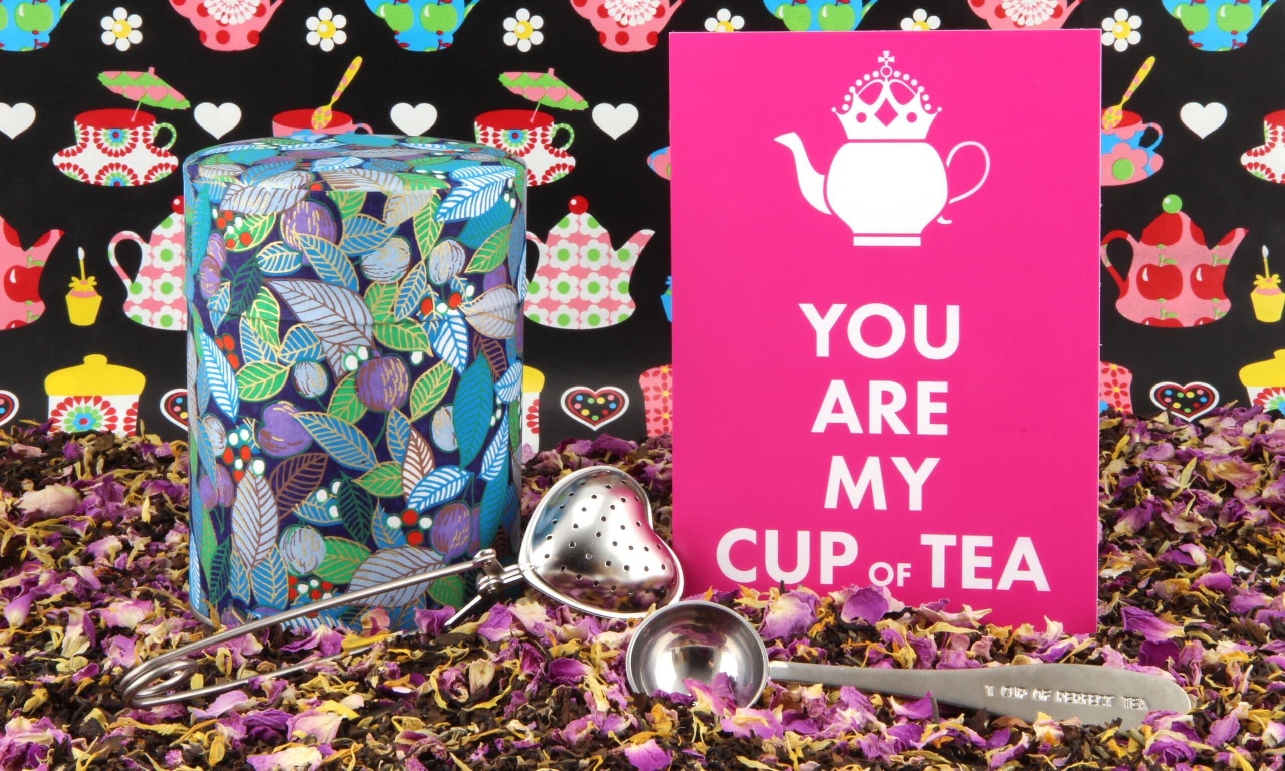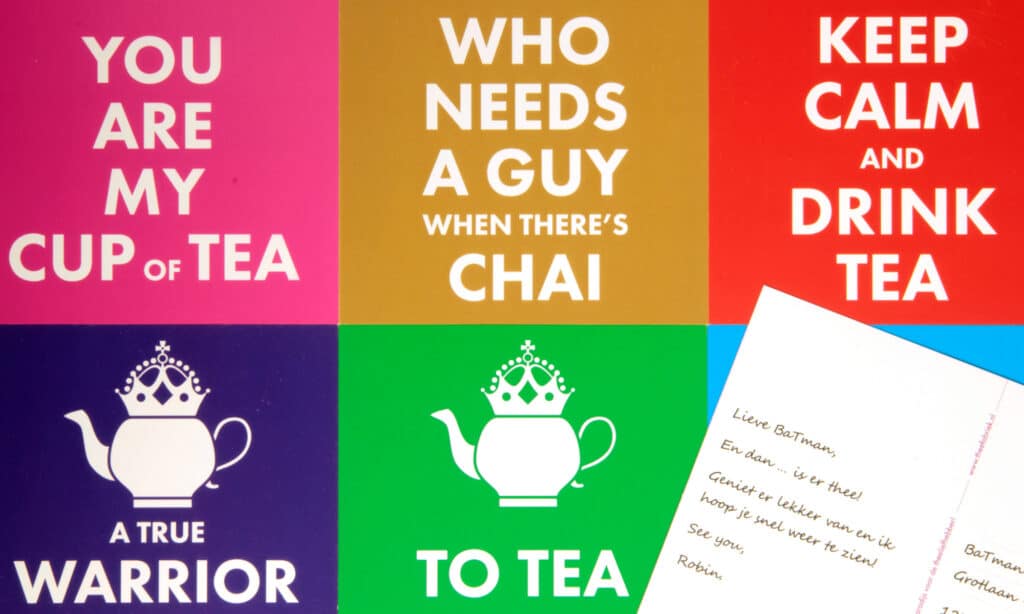 Je kunt elk theeblikje laten vullen met een toepasselijk theetje en er eventueel wat theegerei bij uitzoeken. Je kunt er een mooi kaartje bij doen, met een tekstje, of het kaartje helemaal zelf ontwerpen. We verpakken dan alles als een mooi cadeautje en sturen het op naar de gelukkige ontvanger.