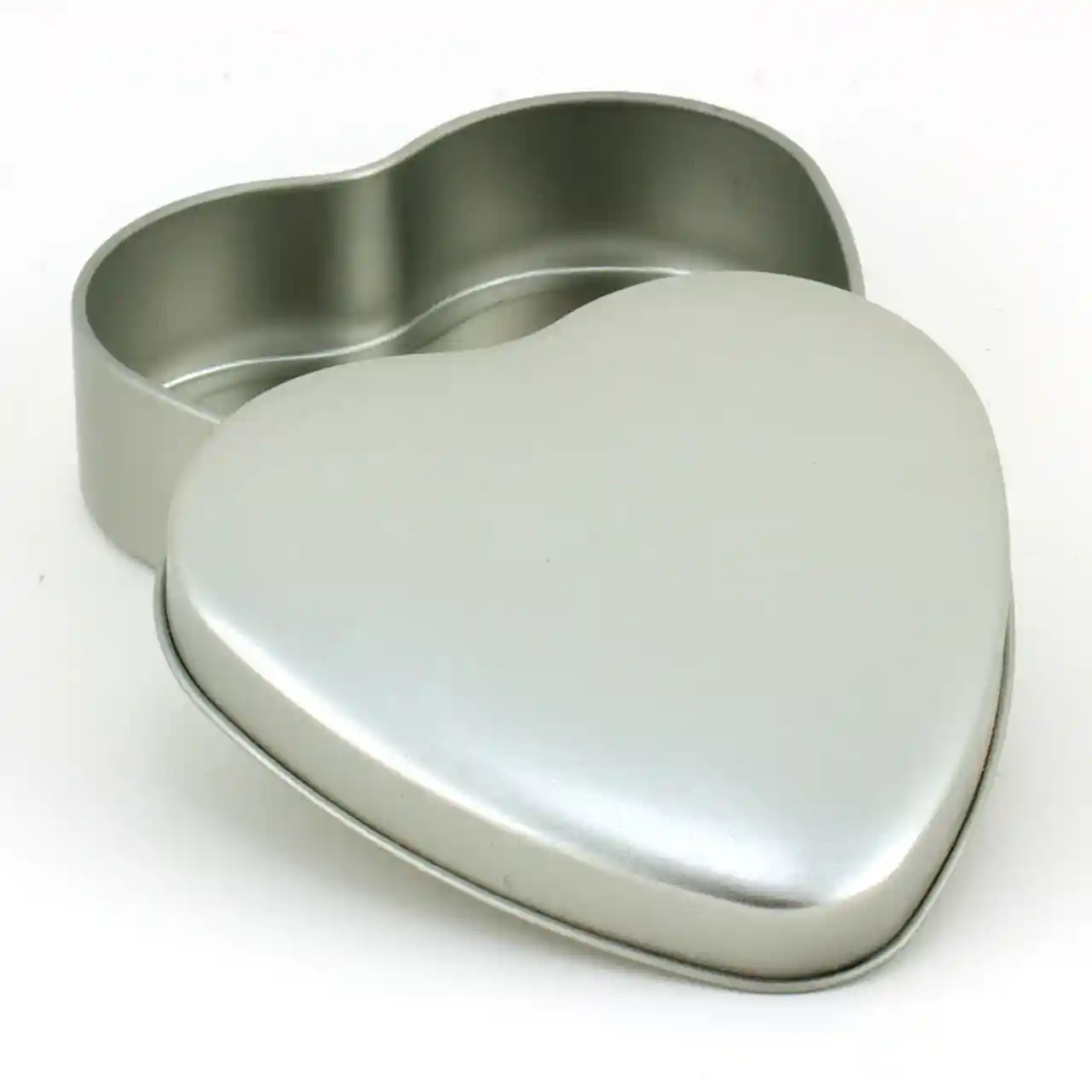 Prachtige, matzilverkleurige, hartvormige (thee)blikje.